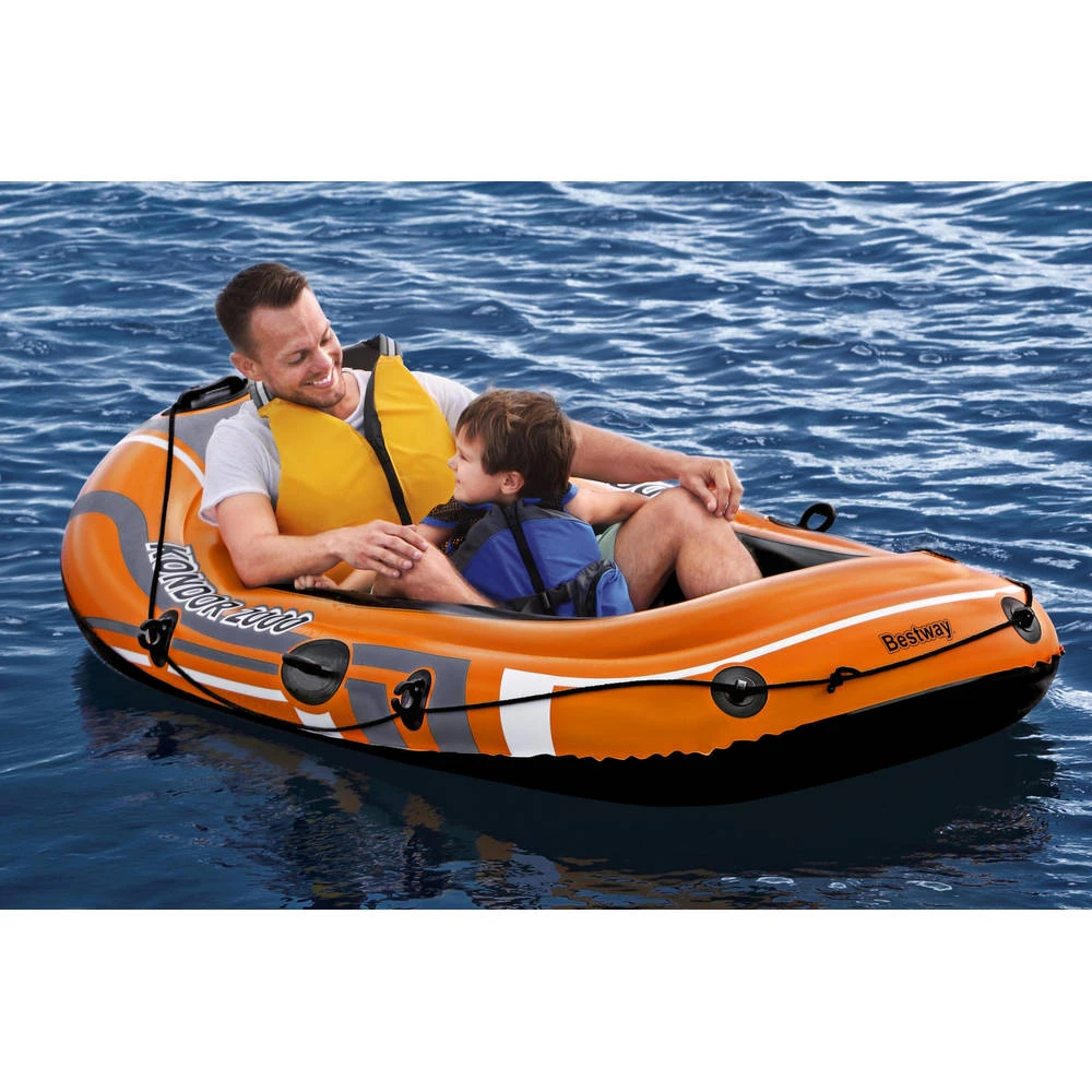 Maak van je volgende bezoek aan de plas met deze Bestway Kondor 2000 opblaasboot een superavontuur. De boot is geschikt voor een volwassene en een kind.