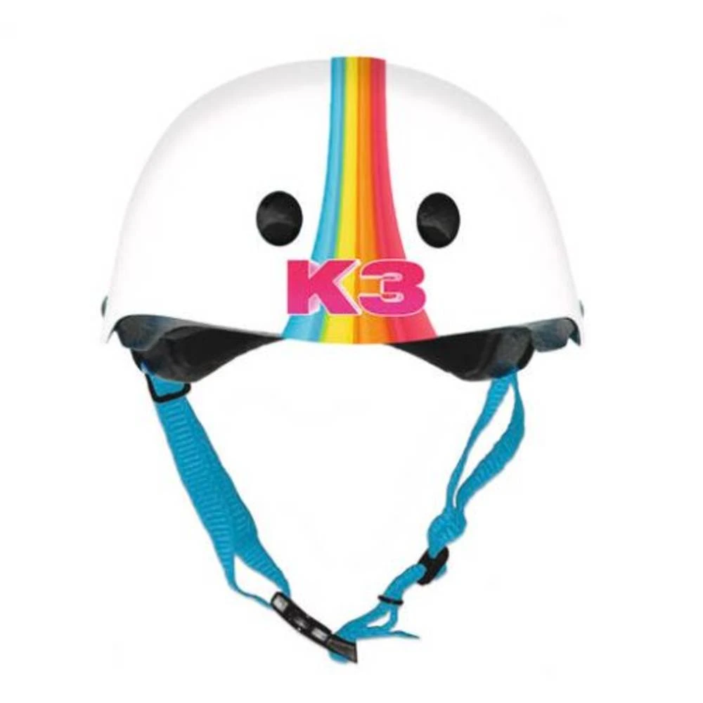 Veilig rolschaatsen of fietsen met deze stoere K3 helm! Met deze lichtgewicht helm is je hoofd goed beschermd wanneer je stunts uithaalt op je skateboard, rolschaatsen of wanneer je naar school fietst. De helm is bedrukt met een regenboog en het K3-logo.