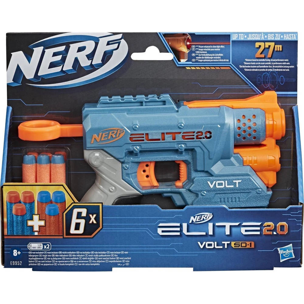 Versla je tegenstanders met de NERF Elite 2.0 Volt SD-1 blaster! De blaster raakt doelen op 4,5 meter afstand.