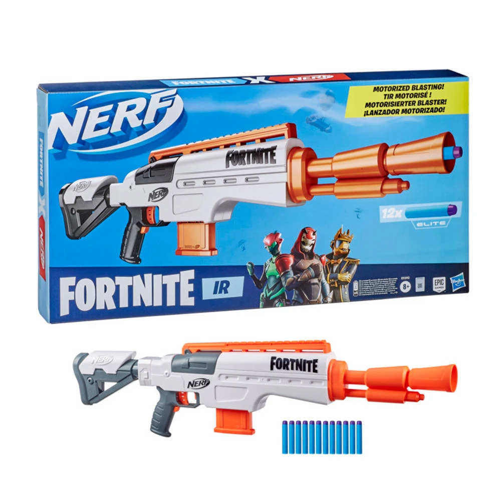 - Schakel je vijanden uit met deze NERF Fortnite IR gemotoriseerde blaster.