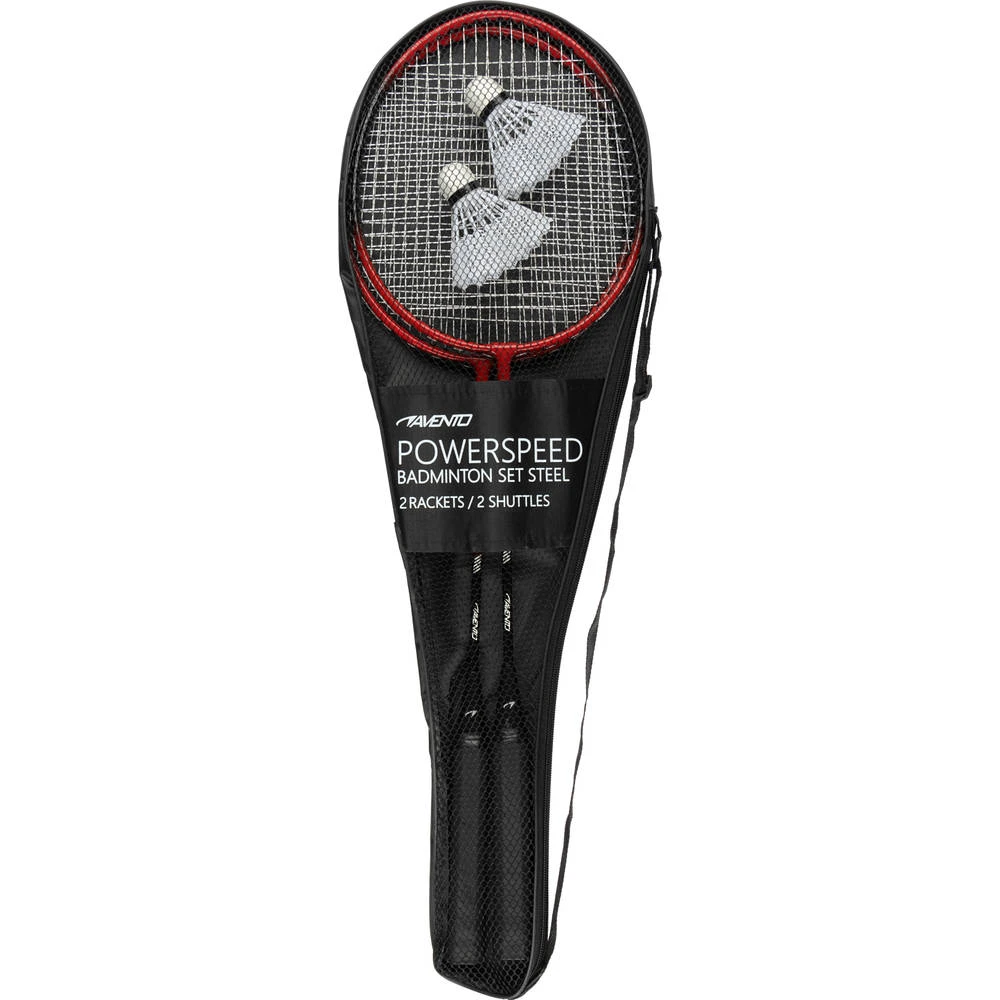 Speel een potje badminton in het park, op het strand, op de camping of in je eigen tuin met deze Avento badminton set. De set bevat twee rackets van gehard staal en twee shuttles. De rackets kunnen goed tegen een stootje en hebben een PU handgreep, zo heb je een stevige grip. De shuttles hebben een dubbele shuttle rok en een EVA top. De set zit verpakt in een handige 3D mesh draagtas, zo neem je jouw badmintonspullen overal gemakkelijk mee naar toe.