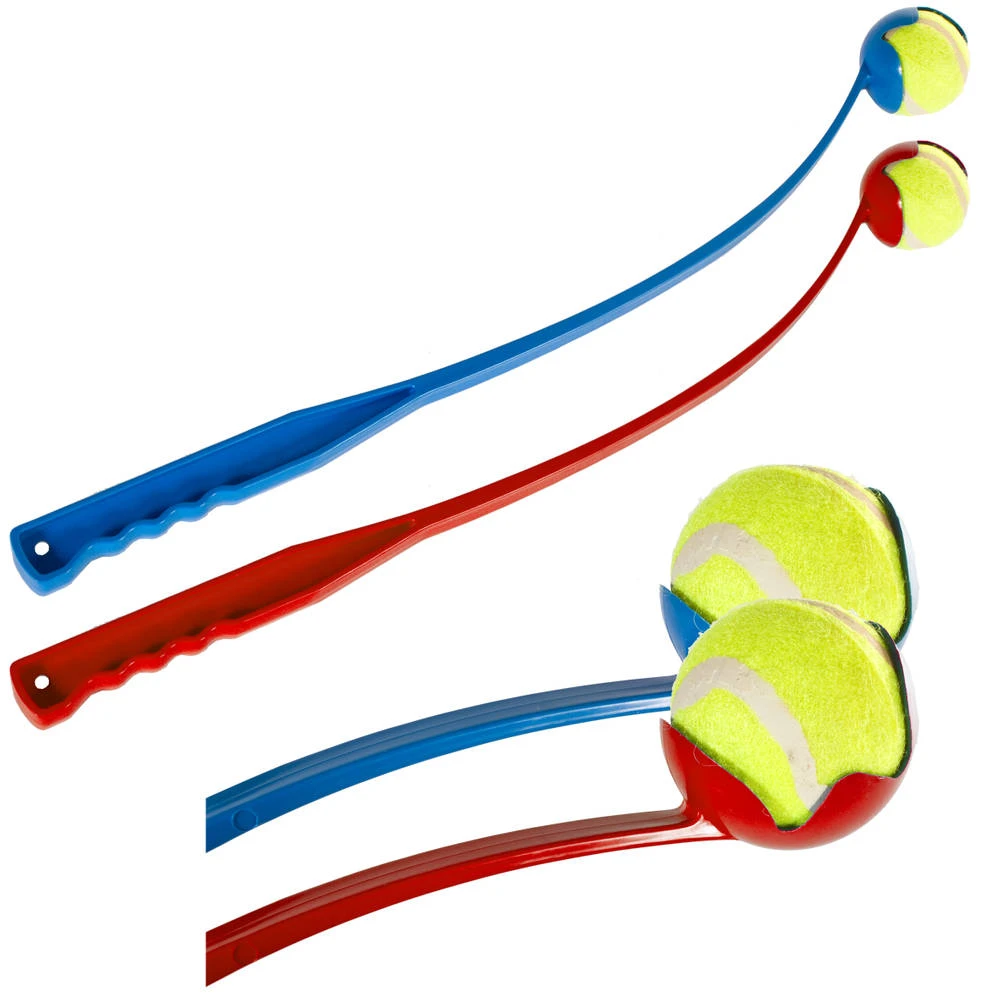 Superleuke ballenwerper inclusief bal. Met deze ballenwerper kun je de bal ver weg werpen, zodat de hond de bal kan apporteren. Met hondenpootjesprint op de bal. De werper is gemaakt van polypropyleen en is verkrijgbaar in de kleuren rood en blauw.