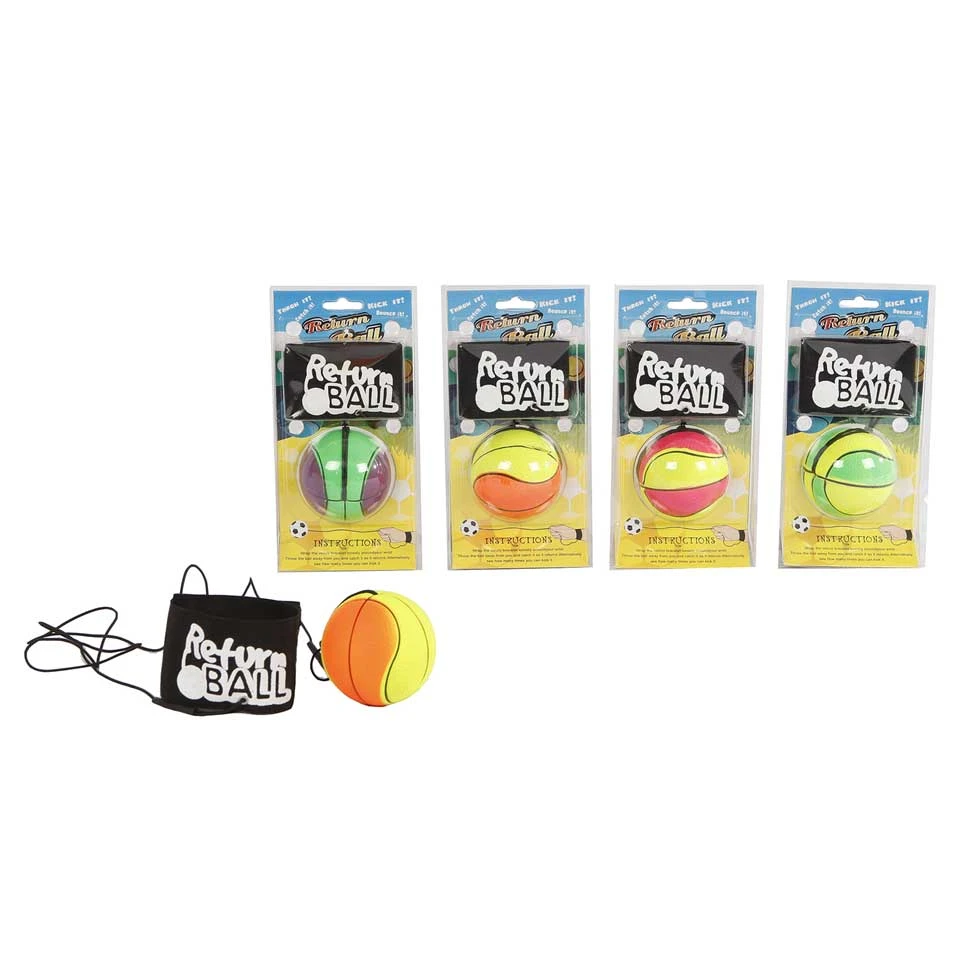 Ontdek de Gummibal! Deze bal zit aan een elastieken koord wat je om je om je pols kunt vastmaken. Gooi de bal en hij komt vanzelf weer terug. Lukt het jou om hem te vangen? De bal heeft een diameter van 63 millimeter en mooie neonkleuren.