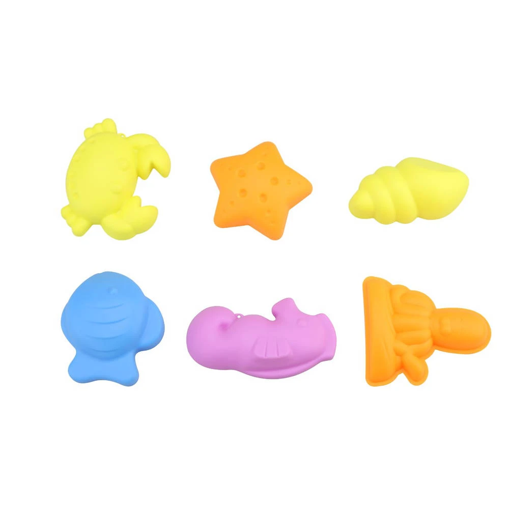 - De bevat zes zandvormen van een vis, zeester, krab, zeepaardje, schelp en oktopus.