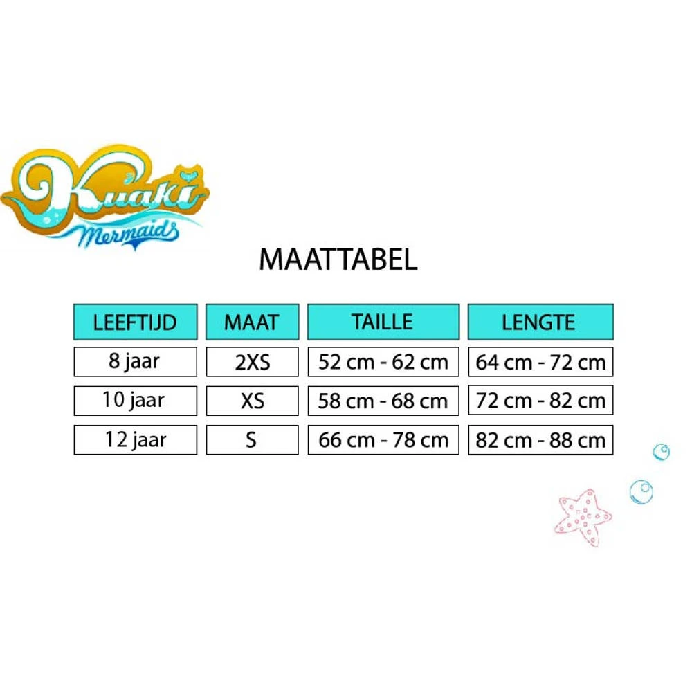 Voor de kleine zeemeerminnen is deze schitterende prinses zeemeerminstaart ideaal. De staart is uitgevoerd in maat 2XS en is gemaakt van lichtgewicht materiaal.
