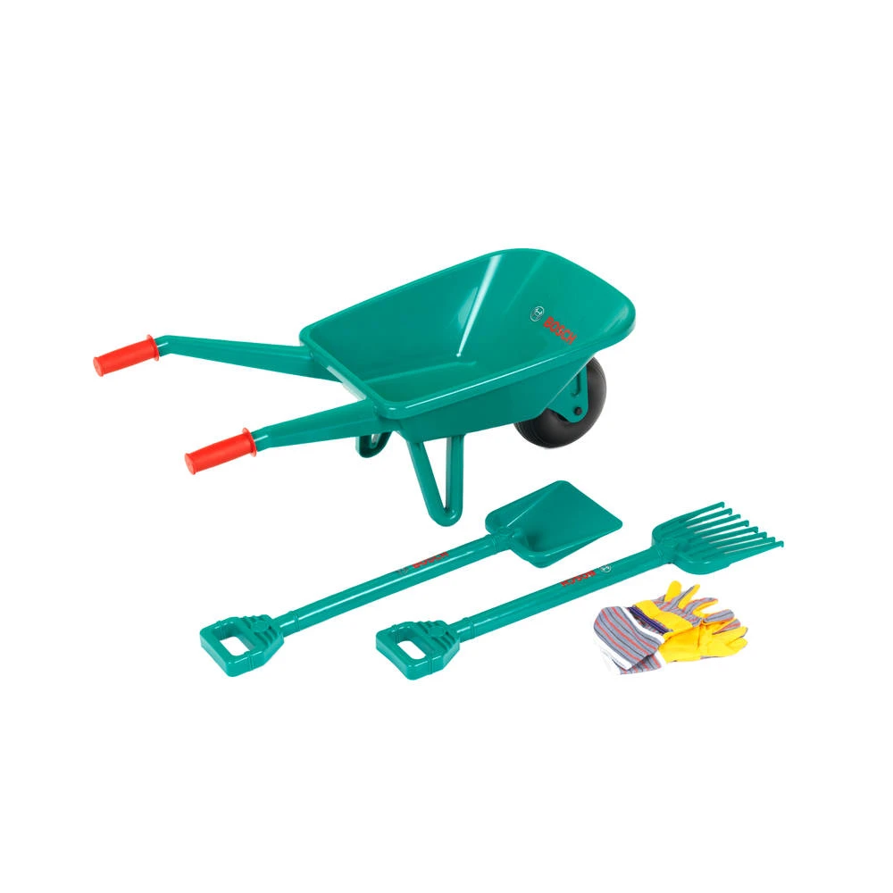 De Bosch kruiwagen met accessoires is ideaal voor al die kleintjes die mama en papa graag helpen in de tuin. De kruiwagen wordt geleverd met een hark, een schop en handschoenen om de taak nog gemakkelijker te maken. Het logo zorgt voor een realistische uitstraling. De speelset is ook een geweldige aanvulling op een zandbak en garandeert uren speelplezier buiten!